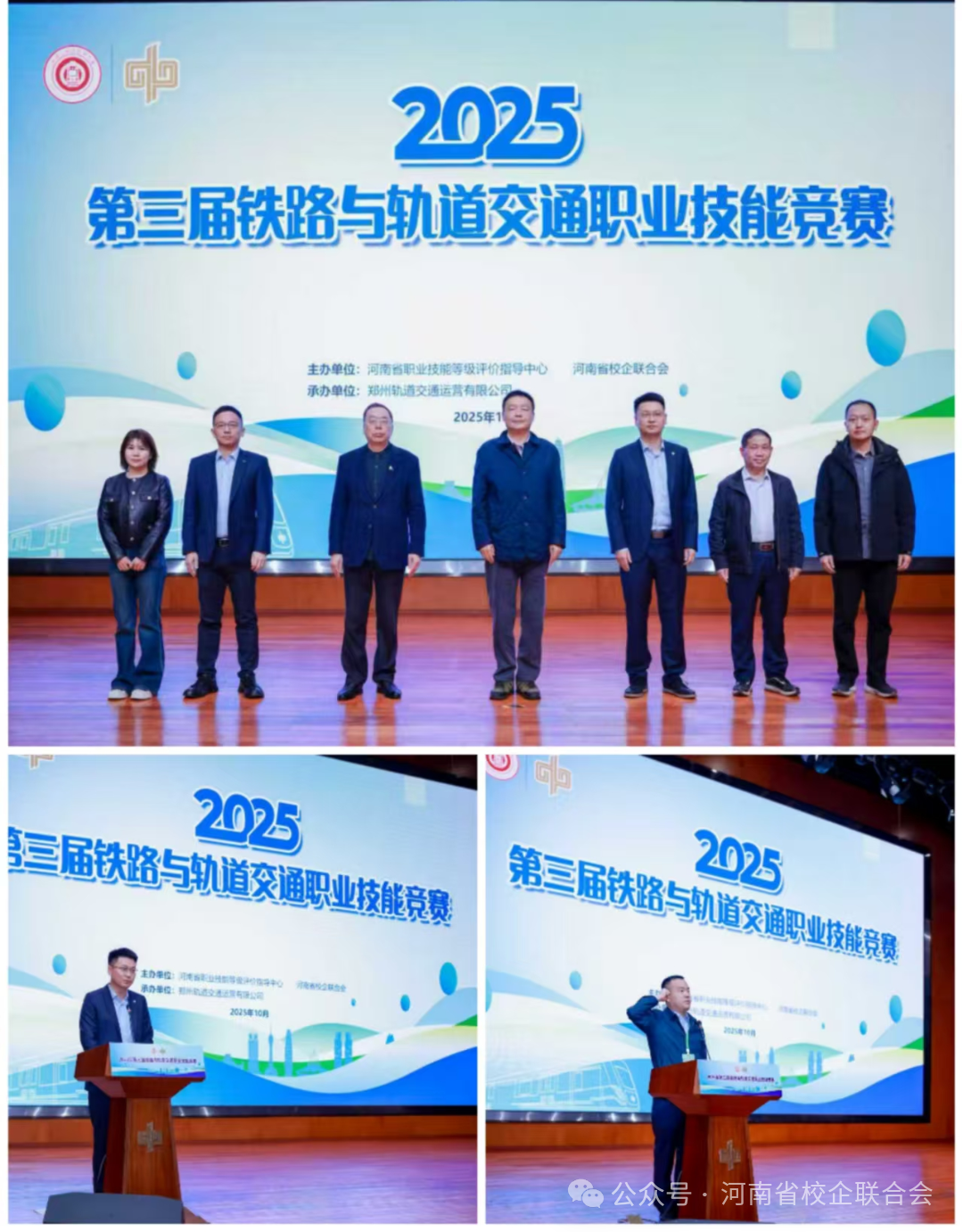 新闻中心 2025年10月29日,河南省第三届铁路与轨道交通职业技能竞赛在郑州正式开幕。本届竞赛由河南省校企联合会、河南省职业技能等级评价指导中心主办,郑州轨道交通运营有限公司承办,竞赛聚焦行业核心岗位,设置城市轨道交通行车值班员、城市轨道交通调度员、城市轨道交通列车司机、城市轨道交通站务员四大赛项,全面覆盖行车组织、调度指挥、列车驾驶与客运服务等关键环节。竞赛聚焦我省产业发展,紧贴经济社会发展需要,营造劳动光荣、技能宝贵、创造伟大的浓厚社会氛围,加快培养大批高素质劳动者和技术技能人才,激励广大青年走技能成才、技能报国之路。
