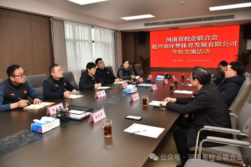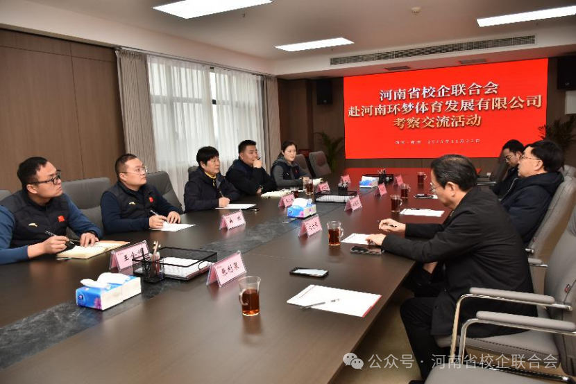 12月22日,河南省校企联合会时明德书记一行走进河南环梦体育发展有限公司考察交流,并围绕围绕河南省校企联盟发展规划落地、校企合作模式创新、文旅体融合发展等议题展开了座谈,为双方后续协同发展搭建沟通桥梁。