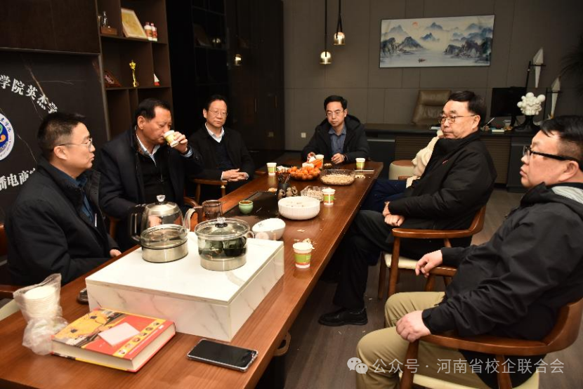 河南省校企联合会副会长兼秘书长刘守义,副会长、华夏世博集团书记杜继涛,河南省华夏文化艺术院副院长、华夏世博集团副总裁、校企联合会监事赵威,副秘书长、会长助理黄广东,参加了交流座谈。