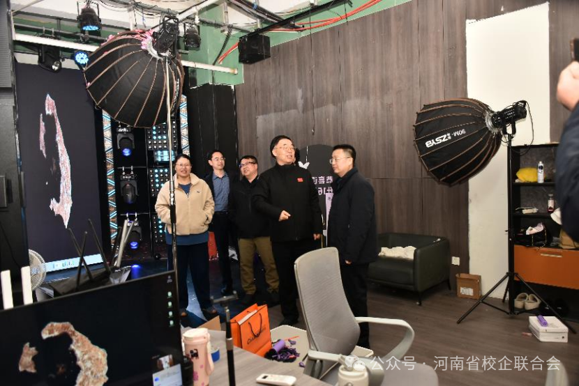 近年来,在政策引领下,郑州直播产业规模持续扩大,产业链不断完善,为青年就业、校企合作与产业升级提供了广阔空间。3月10日,为进一步推进数字经济与直播产业发展,河南省校企联合会党支部书记、会长时明德,河南省华夏文化艺术院秘书长孟庆国等领导一行莅临河南柚趣文化传媒有限公司(柚趣直播)考察调研,并围绕数字文创、直播人才培养与校企深度合作开展座谈交流。柚趣直播负责人孟斌陪同参观、座谈。