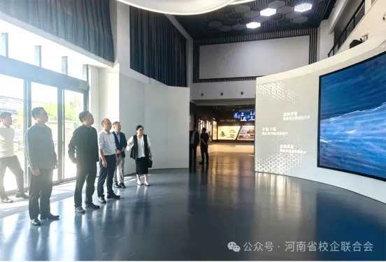 河南省校企联合会党支部书记、会长时明德一行观看企业宣传视频