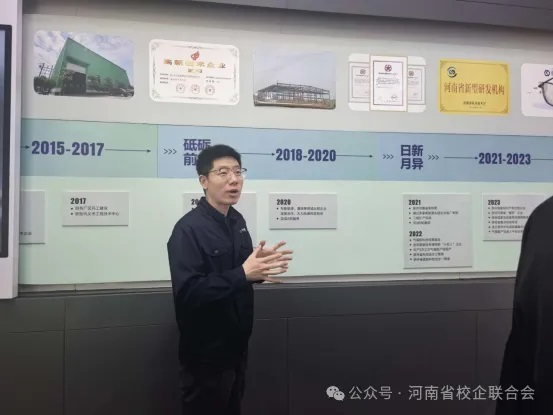 泛锐熠辉创始合伙人、副总经理吴恒全程陪同参观,并详细介绍了企业的发展历程、产品研发、科技攻关及市场应用等相关情况。吴恒热情接待了河南省校企联合会来访嘉宾,陪同参观企业展厅。详细介绍了企业的发展历程、核心技术成果、产品应用领域及未来规划,着重强调了企业作为全国千分之一的“专精特新”小巨人重点企业的责任与担当。他表示,泛锐熠辉自2015年成立以来,始终聚焦纳米二氧化硅气凝胶、碳纤维增强陶瓷基/碳基、树脂基三大类复合材料的研发与产业化,产品广泛应用于新能源、5G通信、航空航天、海洋工程等关键领域。