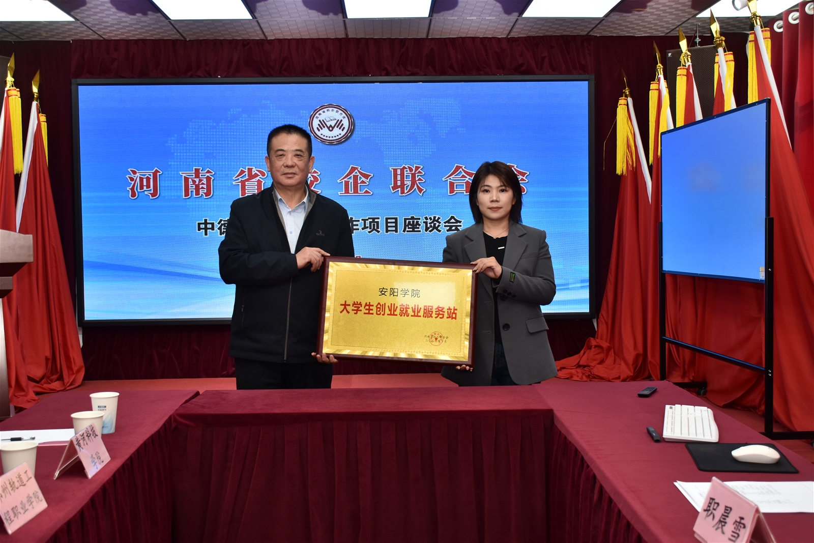 会上由河南省校企联合会副会长职晨雪为部分院校“大学生创业就业服务站”颁牌,此举为下步更好服务院校学生就业形成闭环。